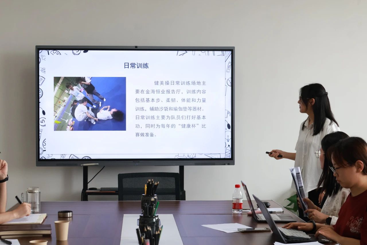 (2022级管理科学专业本科生凌婧娴分享汇报了我院健美操队本学年度的工作)