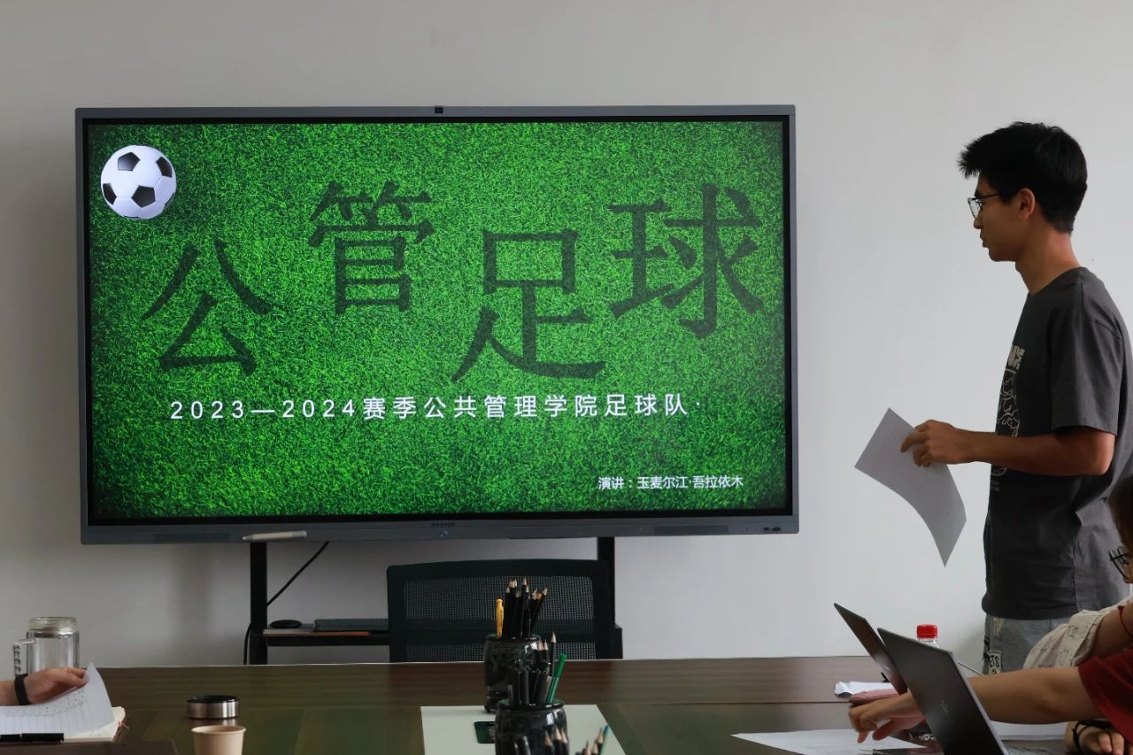 (2022级管理科学专业本科生玉麦尔江·吾拉依木同学对我院足球队的学年工作进行了分享汇报)