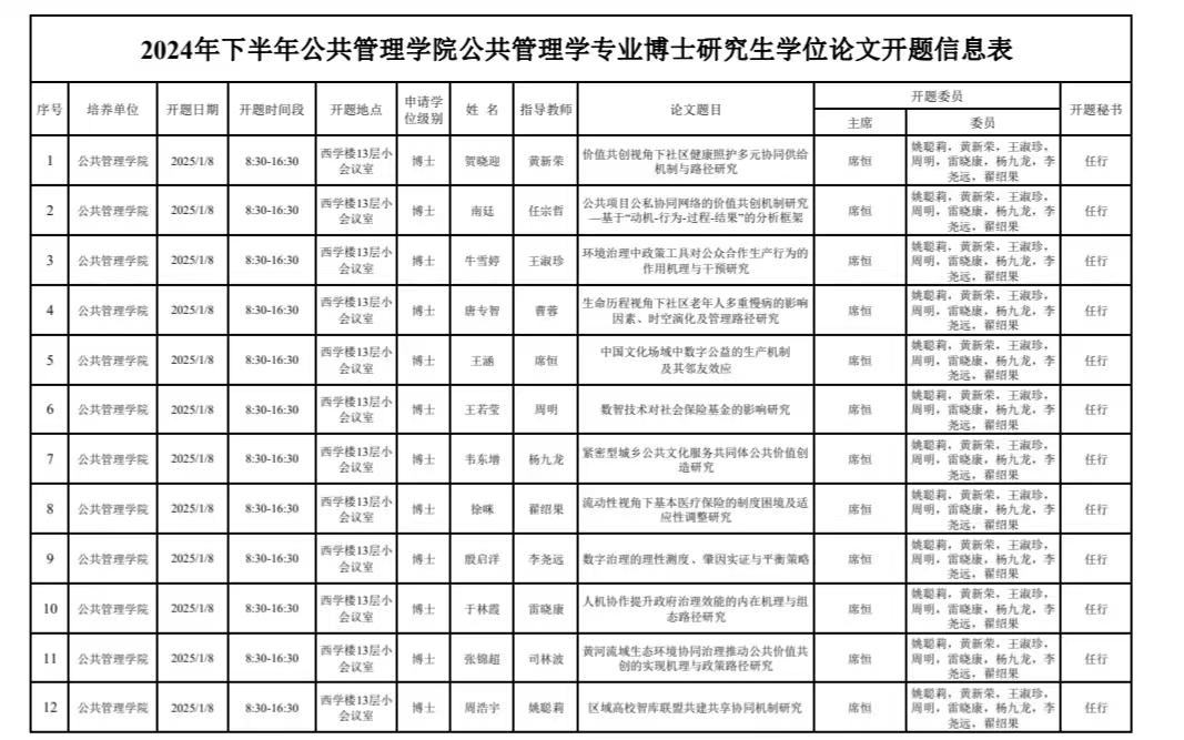2024年下半年565net必赢公共管理学专业博士研究生学位论文开题信息表