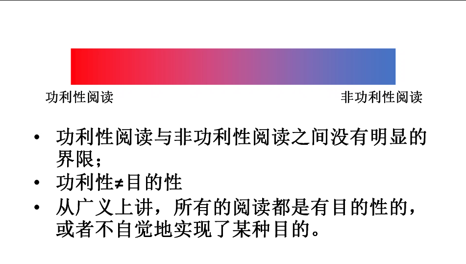 第二部分,周老师分析了各式各样的读书目的:功利化阅读、完善知识水平、增强自信、陶冶情操。功利性阅读和非功利性阅读之间无明显界限,亦无好坏之分,周老师指出,从广义上讲,所有阅读都带有一定目的性,最重要的是以正确的态度去对待。