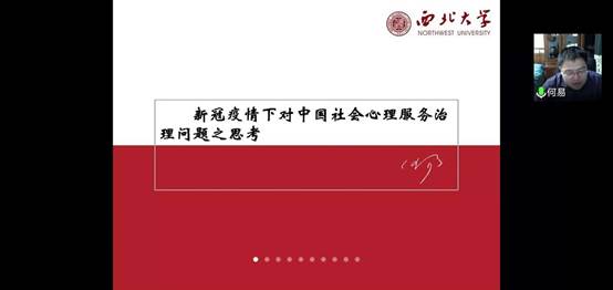 何易讲师分享了“新冠疫情下对中国社会心理服务治理问题之思考”。他主要从病毒的演化特征、世界各国抗疫战略选择、心理需要与心理服务、新冠疫情中的心理服务体系结构、我国社会心理服务体系的发展等五个方面展开分析。何老师认为当前我国社会心理服务体系建设的核心内容是通过心理健康服务来提升人民心理健康水平,促进社会和谐稳定发展;未来则应向更全面的、支撑“五位一体”总体布局的心理建设发展。