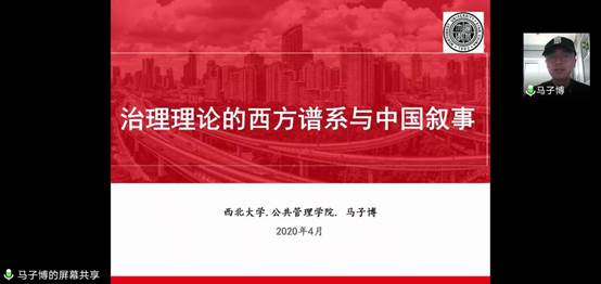 接下来,马子博讲师讲述了“治理理论的西方谱系与中国叙事”。他从治理的莅临:政府工具的失灵与公共价值失序、空洞的能指:西方治理理论的谱系、中国治理理论叙事:差序治理三个方面展开了讲解。