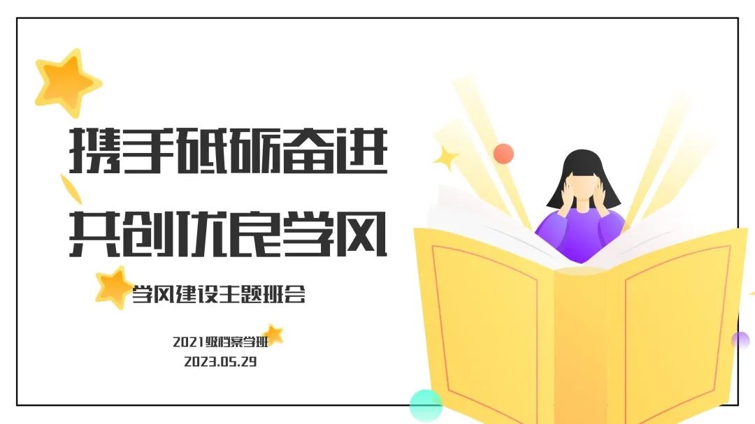 为贯彻落实立德树人根本任务,促进我班学风建设再上新台阶,进一步营造浓厚的学习氛围,565net必赢2021级档案学班积极响应学校号召,于2023年5月29日17:00在教学楼6411教室召开学风建设主题班会,班会由班长段晶丹主持。此次班会以“携手砥砺奋进、共创优良学风”为主题,引导班级同学自觉践行“勤奋、严谨、求实、创新”的优良学风,努力培养具有人文情怀、社会责任、创新能力和国际视野的高素质人才。